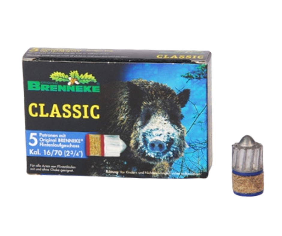 Brokové náboje s jednotnou střelou Brenneke Classic jsou velice přesné, mají vysoký stop efekt a spolehlivý průstřel i težších kusů.