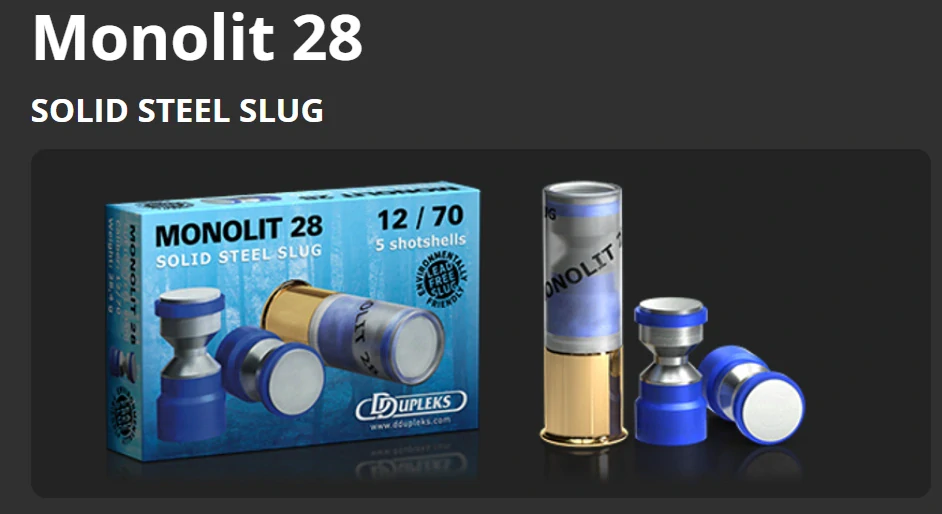 Vysoce průbojné a ranivé ocelové střely od Litevského výrobce DDupleks, mají na zvěř okamžitý smrtící účinek a díky velice rychlému vybarvení nedochází k téměř žádnému nežádoucímu podlití zvěřiny.