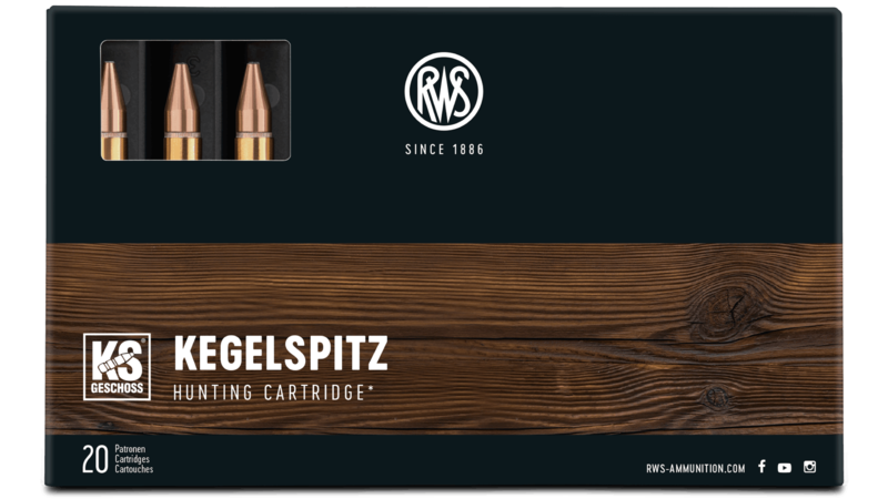 Náboje RWS se střelou KS, která má špici ve tvaru kužele a postupně se zesilující plášť s prolisem pláště a jádra pro řízenou deformaci a optimální balistiku. Střela KS vyniká díky balisticky optimálnímu tvaru jedinečnou přesností. V těle zvěře zůstává minimální množství fragmentů střely. Jedná se o univerzální střelu, použitelnou jak na lehčí, tak i na těžkou zvěř.
