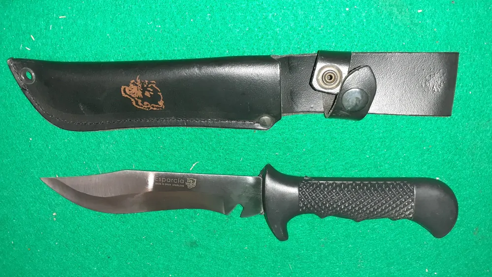 Lovecký nůž španělské firmy ESPACIA s délkou čepale 110 mm z kvalitní nerezové oceli a gumovou rukojetí pro bezpečný úchop.
