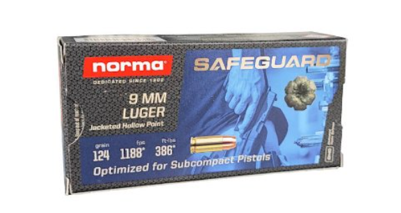 Střelivo 9mm Luger Norma HP SG 8g ( Safeguard) je optimalizováno pro sebeobranné použití PDW zbraních.
