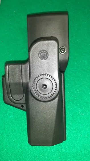 Plastové pistolové poudro s opaskovým závěsem pro pistoli CZ P-07, P-09 opatřeno ukazovákovou pojistkou.