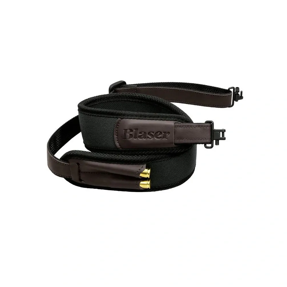 Originální řemen na zbraň v antracitové barvě značky Blaser. 2 kapsičky na náboje. Řemen je vhodný pro všechny typy zbraní značky Blaser. Spodní část řemenu je podšitá protiskluzovou gumou. Řemen je osazen rychloupínacími poutky. Kombinace neoprenu a kůže. Nastavitelná délka řemenu. Šířka řemene: 5,5 cm.