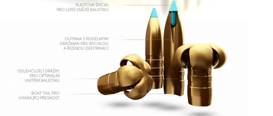 Monolitická střela ráže .30 konstrukce TXRG hmotnost 11,7g