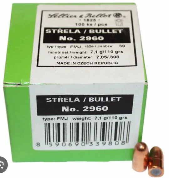 Střela SB .30 FMJ 7,1gskladem610 Kč/ ks504 Kč bez DPH
